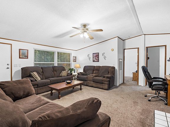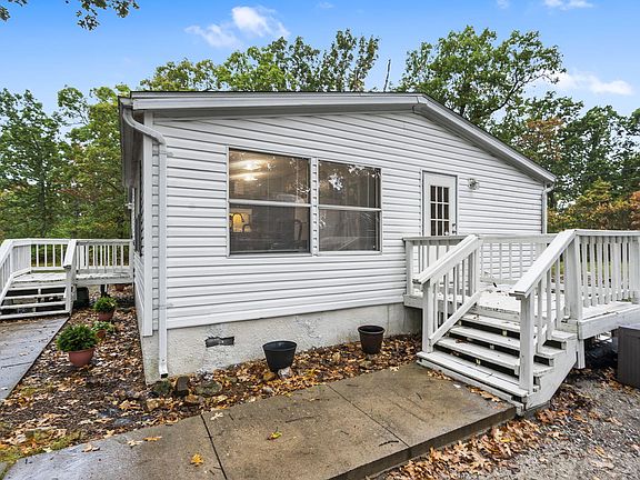 Welcome to 1787 East Ruffin Lane in Pleasant Hope--a peaceful country retreat on 5 level acres, just 12 minutes from Fair Grove and Highway 65. Tucked away among mature trees, this well-maintained 3-bedroom, 2-bathroom home offers privacy, space, and modern updates with the convenience of nearby town access. Step onto the inviting front deck and into a spacious living room featuring a cozy woodburning fireplace, perfect for relaxing evenings. The open kitchen includes an island with barstool seating, updated finishes, a new dishwasher, and an adjoining dining area ideal for everyday meals or entertaining. The split-bedroom layout provides added privacy, with the primary suite offering a soaking tub, dual sink vanity, and walk-in shower. Two additional bedrooms share a full hall bathroom on the opposite side of the home. Enjoy reliable fiber internet, making remote work or streaming a breeze. Recent upgrades include a new roof in 2024, new hot water heater, and stylish kitchen finishes. Outside, the mostly wooded acreage offers a beautiful natural setting, with plenty of room for gardening, exploring, or simply enjoying the quiet. The property includes a washer and dryer, and sits on a permanent foundation. Whether you're looking for a private homestead or easy access to Pleasant Hope, this home combines rural living with modern convenience.