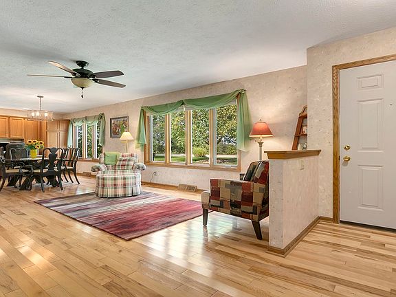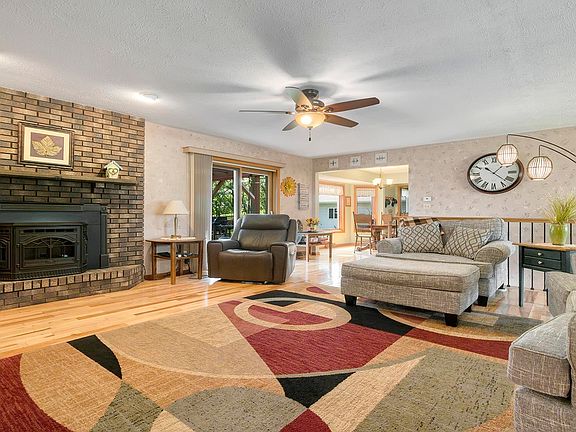 LOOKING FOR A LARGE BACK YARD? You'll feel right at home the moment you step into this 3 bedroom ranch home with 2.5 bathrooms, huge great room with a pellet stove insert in the stunning fireplace! The hickory flooring throughout is a spectacular upgrade!  Granite countertops in the large kitchen with eating area plus a formal dining room!  All appliances stay for easy living! Finished lower level with recreation room and office area. Loads of storage throughout! Inside parking for 4 cars plus a workshop area in the outbuilding! Both garages are heated! New roof and gutter guards, Hot Tub and Pool Table Stay! Park like backyard!  Must see to appreciate!!