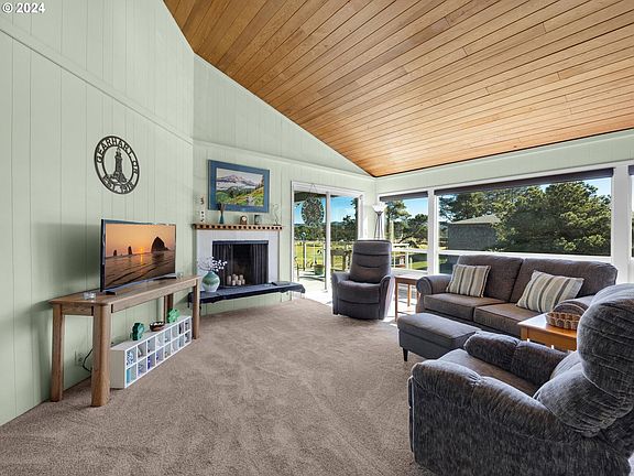 Welcome to your coastal retreat. This beautifully updated 2-bed, 2-bath condo features fresh flooring, vaulted ceilings with wood beams, and captivating views of the adjacent golf course. Step outside for easy access to a private community only beach path or explore the nearby vibrant restaurants and attractions in downtown Gearhart. This home also offers a covered parking spot, recently updated appliances, and access to a heated swimming pool from Memorial Day through Labor Day.