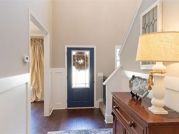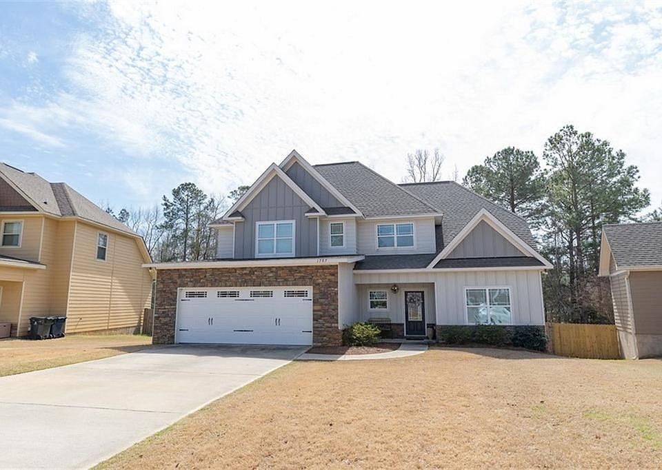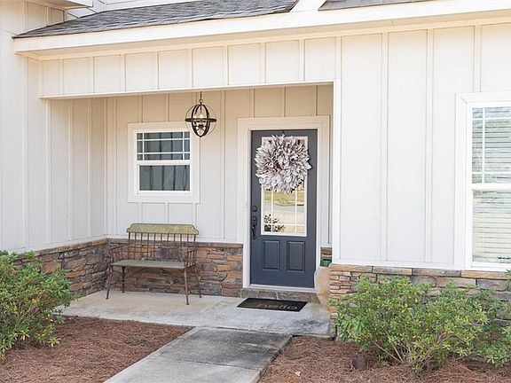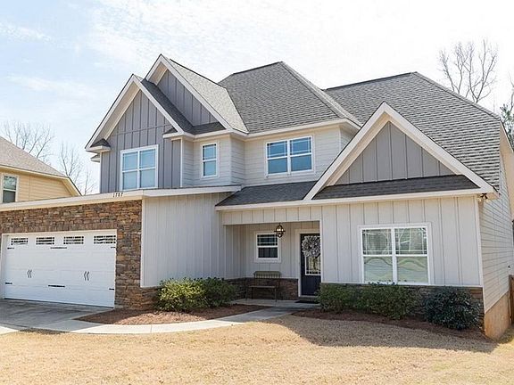 Stacked stone accents the front porch on this lovely home. This home features hardwoods throughout the main living area, a formal dining room enhanced with wainscoting, a great room with a wood burning, stacked stone fireplace and an open kitchen with granite counters. The owner's suite on the main level has separate vanities, a walk-in closet, garden tub and large tile shower. Notice the large well appointed laundry with an attached office. As you make your way to the second floor you will find a larger bedroom/bonus room, a guest room with en suite bathroom, and a generous sized third bedroom. All upstairs bedrooms have large walk-in closets. Enjoy your coffee as you sit on the covered back porch and listen to the crickets from the woods behind your fenced backyard.