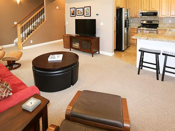 Sunny, south facing and super clean, this corner townhome is 1(large) bedroom (could be 2 bedrooms) / 2 baths and a 2-car garage. Sold fully furnished. Forced air gas heating and gas water heater. Laundry in garage. Bedroom features a gas fireplace, small deck, walk-in closet, and bathroom with large shower. Current configuration is Cal King bed and bunk set. Bedroom could be split/walled-off. Modern kitchen features gas cooking, granite, and window above the sink. Living room is light and bright and also has a gas fireplace. Garage has lockable storage and laundry. Located in the Old Mammoth district and close to the Red Line shuttle and Snowcreek Athletic Club. This property is excellent for permanent living or as a "crashpad" second home. Nightly rentals are not allowed.
