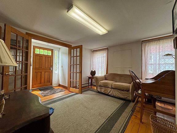 The possibilities are endless! This charming, versatile property has great proximity to Ludlow Proper, Okemo, Lakes Region, Killington, Plymouth State Park, etc. Many updates on this charming c1900 expanded cape. The main house has three bedrooms, one bathroom up, and one bedroom, one bathroom down, Large living room, spacious kitchen, dining room that steps out to sweet private garden, TV Room with mudroom entry. The renovated barn component is accessed through the DR. Great opportunity for an income producing home occupation, art or yoga studio (with a nearly complete separate apartment above). Newly constructed detached garage for ease and extra storage. Located on the town line in both Ludlow and Plymouth towns.