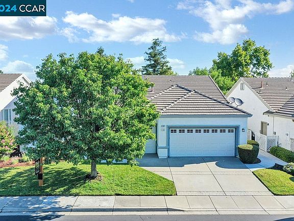 Open house Saturday from 12 PM to 3 PM – The Wellington Model remodeled on the golf course - Must be 55 years or older. THIS HOME HAS A SOLAR SYSTEM! 3 BR’s & 2.5 baths w/2,156 sq ft, w/ 2.5 car garage w/new doors & openers. The Kitchen- Quartz counters & HW flooring, Island w/custom sink & faucet, newer cabinets, appliances w/gas cooktop, double ovens, microwave, dishwasher & refrigerator. Dinette area w/views of golf & sunsets. Formal living rm & dining rm. Custom lighting, plantation shutters & ceiling fans throughout. The Family Rm w/ HW floors, stone gas burning fireplace w/built-in shelving. All Bathrooms newer cabinets, flooring, Quartz counters & shower glass. Guest suit walk-in stall shower. Master/primary bedroom w/views of golf course, bay window & French door to patio. Master/primary bath Rm has frameless glass shower stall, separate tub, high quartz counters, large walk-in closet. Laundry Rm w/cabinets, sink & washer & dryer. Covered patio / overhangs & views of the 17th hole. Leaf Filter system on gutters. Golf cart may be available with home purchase. The HOA is $125 monthly-includes swimming pool, hot tub, gym, tennis, bocce ball, activity clubs to join, dinner/dances, security gates. Minutes away from Kaiser Hospital, John Muir, Safeway & CVS.