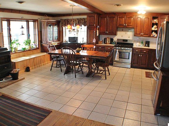 Farmstead on 55 acres. Home boasts large rooms w/private bath for master bedroom. Wrap around porch. Needs some TLC. Variety of barn styles and sizes. 3 chicken coops. Majority of acreage currently used by neighbors for farming. Current owner keeps chickens, ducks, goats and horse on site. Ducks available for sale. Variety of fruit trees. Easily a self sustaining home site. Drilled well. 1000 gal septic tank. Current wood stove excluded - replacement to be installed.