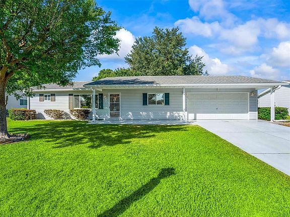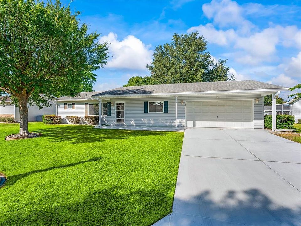 PRICE ADJUSTMENT !!!!Welcome to this 2 BR 2BA 2 Car Garage located in the 55+ Gated Golf Course Community of Spruce Creek South. The home is located close to shopping, dining, recreation, medical care and is a short ride from all The Villages has to offer. The home has vaulted ceilings in the open concept living room and dining room as well as a split bedroom floor plan. The Master Bedroom has an en-suite master bath and spacious walk-in closet. The sliding door in the dining room lead to the enclosed lanai and a patio extending outside for grilling. The Mature Landscaping in the front and rear yard provides great curb appeal and shade from the Florida Sun. Laminate Flooring flows through the home with tile in both bathrooms. The Roof was replaced in 2017. HVAC replaced in 2016 and Hot Water Heater in 2014. All the major systems replacements have been done. Home being sold "AS IS".