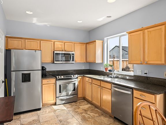 4 bedroom 2.5 bath home in sought after Woodhaven neighborhood! Kitchen has S/S appliances, pantry, tile floors, granite counters, custom cabinets and lots of storage! Primary Suite w/ large closet, vaulted ceiling, attached bath w/ dual sinks! Large bedrooms, high ceilings, new carpet, new interior paint, new exterior paint, newly refinished hardwood floors, and a 'bonus room' loft upstairs! Gas fireplace, 2 car garage, deck, firepit, dog run and more! Not far from Sherwood/Newberg amenities, wooded trails, farmers market, Woodhaven park--and a new high school in a great district! Bike to wineries, restaurants, shops!