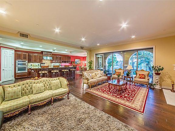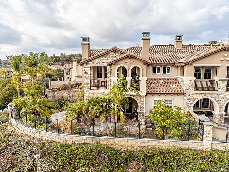 Welcome to absolute beauty with this exquisite Toll Brothers residence nestled in the prestigious Heritage at Vista Del Verde community. This home, strategically positioned on one of the largest and most sought-after private lots, offers breathtaking panoramic views of city lights, hills, Catalina Island, sunsets, and even Disneyland & July 4 fireworks. The family room boasts a perfect blend of comfort and style with a fireplace, rich built-ins, stone accents, wood-beamed ceilings, real wood floors, and expansive glass doors leading to the covered patio and spacious grounds. The open-concept first floor features a living room with a fireplace and a retractable glass wall, seamlessly connecting indoor and outdoor living. The kitchen and dining room, designed for everyday luxury, showcase stainless appliances, granite slab counters, an oversized island with seating, an office niche, walk-in pantry, and ample space for entertaining. The lower level also includes a beautiful office, interior laundry, and a half bath. Ascend the elegant curved staircase to discover the master suite, complete with a private viewing balcony, exceptional built-ins, a custom walk-in closet, dual vanities, a soaking tub, and a separate shower. Two additional en-suite bedrooms with spacious layouts complete this luxurious home. Welcome to a life of unparalleled elegance and comfort.