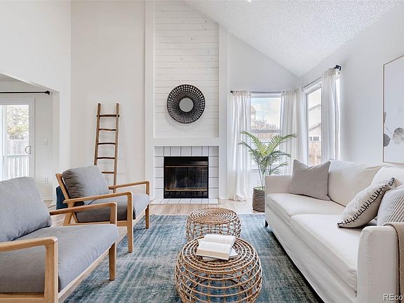 This newly updated Briarwood home offers a comfortable and functional floor plan in a welcoming community rich with parks, trails, schools and playgrounds. The light-filled living room features a vaulted ceiling with skylights and a "rustic modern" wood-burning fireplace that adds character and warmth to the space. The kitchen's crisp white cabinets and stainless appliances provide timeless appeal. Connected to the kitchen, the dining room opens up to a covered deck and fenced backyard with a fire pit and a garden shed to hold your lawn supplies. It's an ideal setting for outdoor gatherings and BBQs. Continuing from the kitchen, you'll discover a convenient powder room, a laundry room equipped with washer, dryer, and storage cabinets, and easy access to the attached 2-car garage. Heading upstairs, appreciate the lush new carpet that creates a clean and cozy anchor for all three bedrooms, including the primary bedroom with a walk-in closet. The full bathroom is conveniently accessible from both the primary bedroom and the hallway. With fresh neutral paint throughout, this home awaits your personal touches.