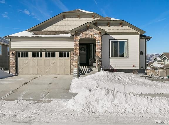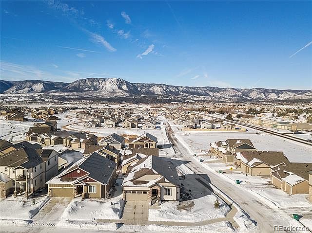 This beautiful corner-lot ranch home will take your breath away. Everything has been chosen with thought and care, from the stunning mountain views to the fine details inside. As you enter the home you are drawn to the beautiful hardwood floors and open floor-plan. Entertain family and friends in your gourmet Chef's kitchen with new high-end GE appliances, gorgeous quartz counters, island, and breakfast bar. Cozy up by the rustic stone fireplace in the spacious living room. Retreat downstairs to the full walk-out basement with plenty of additional storage. Step out to the patio and low-maintenance yard to enjoy the Colorado sunshine. This is a great place to host a barbecue, gathering, or enjoy your morning cup of coffee. Your dream home is located in a newly built, friendly and quiet neighborhood. The ideal location is mid point to Colorado Springs and Denver. This is a perfect place to call home!