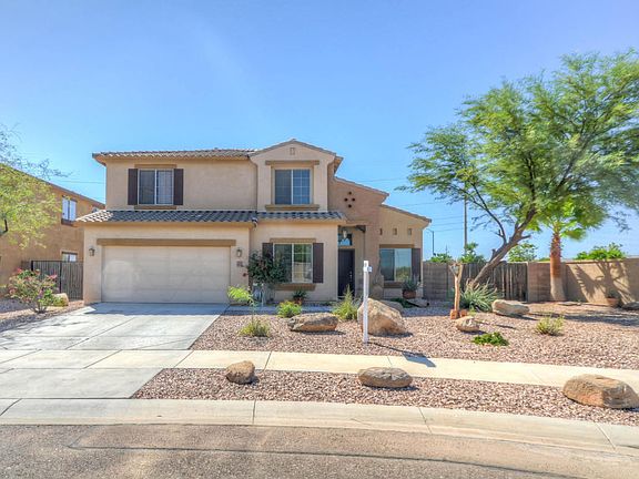 Fantastic 4 bedroom, 3 bathroom, 3110 square foot home in Surprise! As soon as you arrive, you will see the care that has been taken by the (original) owners to maintain this home. The formal living and dining areas, large family room, and open, eat-in kitchen offer generous space for relaxing and entertaining. The kitchen includes upgraded cabinets, large island, breakfast bar, and black appliances. Downstairs Den offers convenient office space or excellent place for guests with access to full, downstairs bath! Upstairs you'll find built-in cabinets for extra storage, a HUGE master bedroom with private bath and walk-in closet, as well as three additional, generous bedrooms and 2nd full bath with updated vanities and mirrors. You'll absolutely LOVE the four-car, tandem garage with built-in