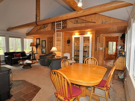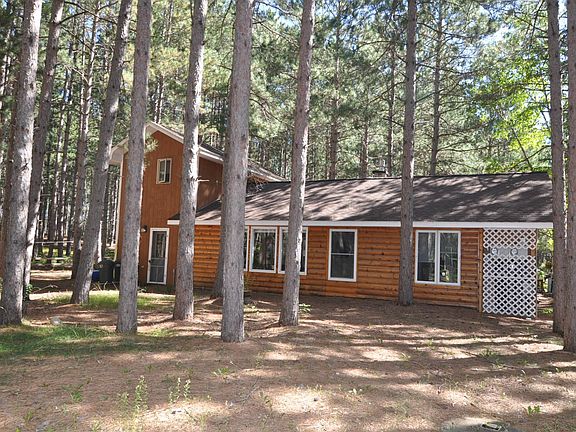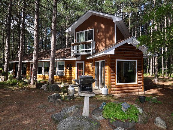 Nevis country home nestled on 9.5 acres of mature Norway pines. This year round home offers 2 bedrooms, 2 baths with privacy and room to roam. There is a detached garage with heated shop as well as 2 hoop sheds for storage. The half-log sided home offers beautiful views through the many large windows. The kitchen has access to the deck for grilling, a cute breakfast nook, and the main floor laundry/office features a door to the back yard. The living/dining room has a vaulted ceiling with log beams, a gas fireplace and a built-in lighted hutch. The adjoining den boasts a full wall bookcase, and access to the main floor bedroom and spacious bathroom with claw foot tub. Upstairs, you will find a bedroom suite with a sliding door to a juliet deck, a 3/4 bath with closet and access to a small loft overlooking the living room. A wonderful deck welcomes you to this home loaded with character.