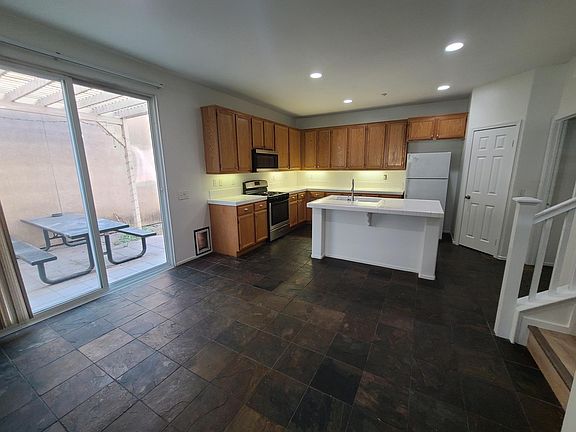 Welcome to Aldea Village. This giant 2012 sf property boasts a fresh coat of bright and airy paint, BRAND NEW Luxury Vinyl flooring throughout for a clean and modern feel. Hang out with friends and family in the spacious living and open kitchen concept. Picnic table included for outdoor dining in private patio space. First floor room can be used as an office space or bedroom. Upstairs features excellent sized bedrooms with a gigantic master suite that includes tub, dual sinks, and walk in closet. 3 bathrooms total on this property. Two car attached garage with reserved parking stall on side to park a total of 3 cars, public parking spaces available around the community as well. Property includes in unit washer and dryer, stove, microwave, dishwasher and refrigerator. Conveniently located in a central location, close to schools like UCR, RCC, and downtown Riverside. Owner pays for HOA and Trash, tenant responsible for all other utilities. Appliances included in property without warranty or promise of repair. No Smoking, no pets. Rental Insurance required.