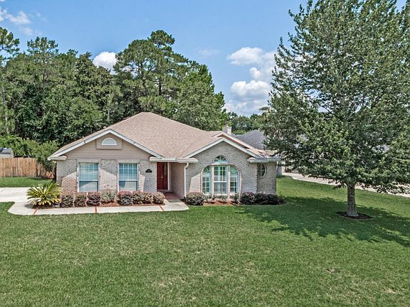 Move in ready home in Fleming Island without the CDD fees! Three bedrooms and two baths with a split floor plan. Enjoy your master suite with lots of space, light and windows with plantation shutters. A remodeled master bathroom with dual vanities, soaking tub and custom tiled shower. Great room concept with high ceilings, fireplace, and sliding doors to rear patio. Large privacy fenced back yard with storage shed backing up to woods for privacy. 18'''' tiles in entry and wet areas. Side entry garage giving great curb appeal. New roof in 2011. New AC in 2015.