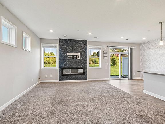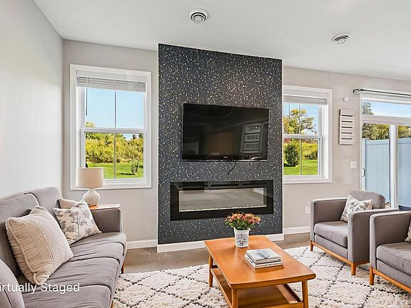 Bright and airy end-unit townhouse featuring soaring two-story ceilings and abundant natural light. The open main level floorplan is perfect for everyday living and entertaining, highlighted by a designer kitchen with quartz countertops, gas stove, and a large center island. Upstairs, you’ll find a convenient laundry room and a private primary suite with a spacious bath, double vanity, and generous walk-in closet. Additional highlights include a two-car garage, brand-new carpet, fresh paint throughout, and the option for a quick close. Ideally located, close to shopping, schools, recreation, and Highway 212. A stylish home in a prime location, move right in and enjoy!