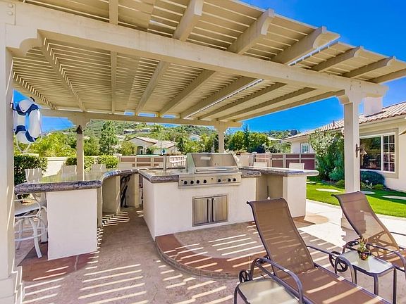 Gorgeous family & entertainerâs delight single level 4 BR 3BA home features panoramic VIEWS Chefs kitchen Center Island granite counters breakfast bar & nook all open to a great room w/custom bar 2 beverage coolers fireplace and views. Master suite has dual sided fireplace sitting area & dreamy master bath. Enjoy the Infiniti pool beach entry & spa. 7 hole putting Green. Spectacular outdoor covered entertaining area w/BBQ & refrigerators privacy provided by 6 ft high solid wall ...see sup.