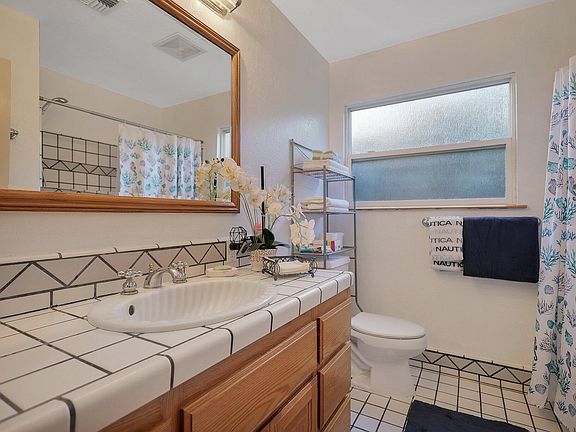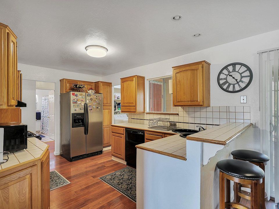 Great starter or move up home, conveniently located near Victor and Hwy 44, Lowe's & Safeway, on a short dead-end street. Updated throughout the years with tiled counter-tops and oak cabinetry in kitchen and baths, a tankless hot water heater and laminate floors. New kitchen stove and new carpeting just installed. A woodstove insert on brick fireplace & laminate add charm to the whole house — a 1960's rendition of a great room. The laminate floors Roof was replaced after Redding's big ''hailstorm''. The large backyard has room for a pool but is currently occupied with multiple fruit trees and shrubs. A trampoline would easily fit on the aggregate patio. Mostly long-time residents on the street. Washer, dryer, & refrigerator included. A charming 1300 SF home with sizeable backyard!