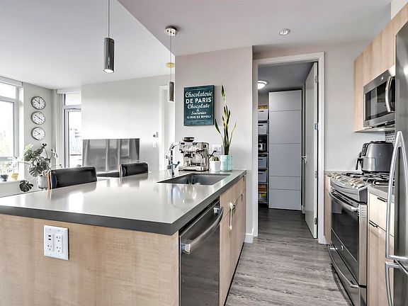 Please text us as per the information in the photos or contact us using the buttons available. If the home is ready for showings we will reach out to schedule a private showing with you.The home is available now!Address: 1788 Ontario St, VancouverWe are offering an unfurnished 2 bedroom condo in Vancouver. The home is located on the 4th floor with a south facing balcony. This open concept corner 2 bedroom & 2 bath condo has a spacious living room, 9ft ceilings & bright oversized windows. Some features include sleek s/s appliances, gas range, stone counter tops, premium Hydrocork flooring, built-in wine rack & black-out blinds in the bedrooms. Comfortable layout with bedrooms & baths on opposite ends, & heated floor in the primary ensuite. There is in suite laundry and approximately 792 square feet of living space. There is 1 parking spot and storage locker included. Bike storage is available if needed.Provided with your rent is access to a gym, outdoor garden, and recreation centre.Situated in the heart of the dynamic Olympic Village neighborhood, this modern condo offers an exciting urban lifestyle surrounded by convenience and culture. Enjoy being steps from the beautiful False Creek Seawall, perfect for walking, cycling, and scenic views. The area boasts a variety of trendy cafes, restaurants, breweries, and boutique shops, as well as easy access to essentials like grocery stores and fitness facilities. Commuting is effortless with nearby Main Street-Science World SkyTrain Station and major transit routes connecting you to downtown Vancouver and beyond.- Neighbourhood: Olympic Village - Type of Unit: Condo - Approximate Square Footage: 792 - View Direction: South - Number of Bedrooms: 2 - Number of Bathrooms: 2 - Heating / Cooling: Electric Baseboard / None - Number of Parking Spots and Type: 1 secured spot - Storage Locker: Yes- Pet Policy: 1 pet permitted (35lb weight limit full grown) - Smoking: No smoking, growing, or processing any cigarettes, marijuana, or other combustibles on the property - Services Included with Rent: Building services as provided by Strata, Water, Hot Water, Gas, Sewer Services and Garbage Removal - Tenant Responsible for: Internet, Cable, Hydro (electricity) and HeatDeposit(s): 1 half of one months rent as per legislation Minimum Lease Term: 1 year and then month to month Tenants Insurance is required at possession The Strata may charge a $250 move in/out fee
