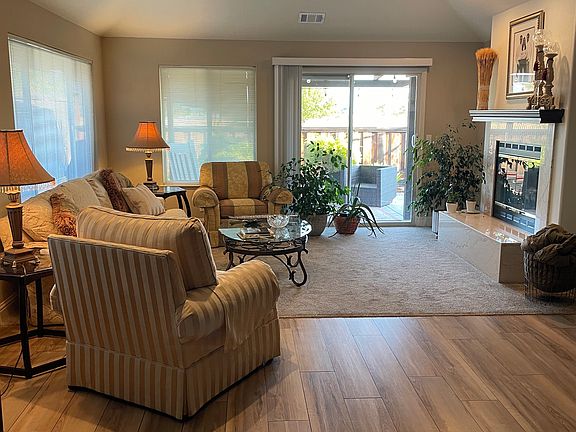 The ultimate in serenity and privacy. This 2 bedroom 2 bath attached home, located in Pine Tree Villas, a gated 55+ community, boasts views of the community park from the front and wide open views of the South County Foothills and San Pedro percolation ponds from the rear deck and covered patio. Enjoy the peace and quiet of home or gathering in the community clubhouse or at the swimming pool and hot tub.