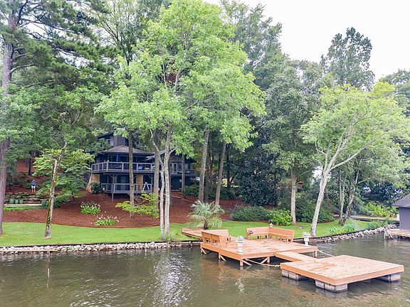 5 Bedroom home on Lake Harding with an in-ground pool, closed in 2 slip boathouse with doors & lifts, additional large dock with raised walkways, 225' seawall, beautiful landscaping with irrigation ( from the lake), outdoor lighting, entertainment areas + pool area. 4 decks, screened in porch, wood floors, soaring ceilings, 2 master suites, raised kitchen overlooking family room with granite throughout, Game room & workshop. Master suite with large closets, new paint & landscaping,4 full baths