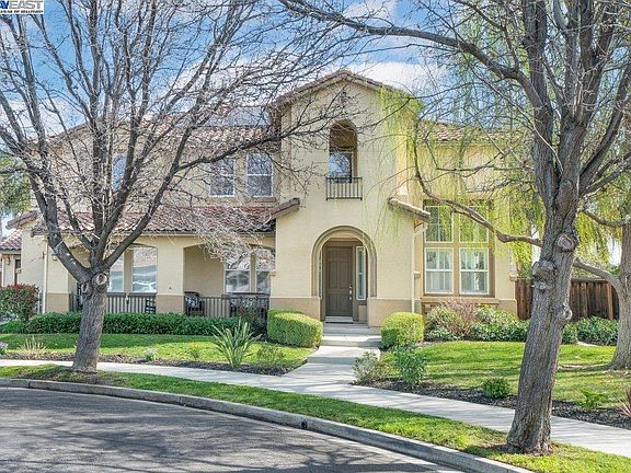 Welcome to the Montelena neighborhood! This 5-bed, 4-bath haven spans 3,599 square feet and is nestled in a quiet cul-de-sac. As you enter the home, you are greeted by a light filled living room and office space that leads directly to the great room. Step into the plush, recently carpeted family room with a cozy fireplace and in-ceiling speaker system. The adjacent kitchen boasts a Wolf range, large island, a wine/coffee nook, abundant storage and space to entertain. The kitchen seamlessly extends into the backyard which features a System Pavers built-in BBQ grill, a pool with waterfalls, hot tub, and a meticulously landscaped space. The lower level is completed with a generous bedroom and full bathroom. As you make your way upstairs, one of two primary suites offers a spacious retreat. As you advance further, you encounter two guest bedrooms that are connected by a jack and jill bathroom. Finally, you enter the second primary suite which includes an office space, walk-in closet, and expansive bathroom. Situated on a large lot, this home features owned solar panels and an EV charger. It is conveniently located near outdoor activities including nearby parks, easy Hwy 4 access, restaurants, a gym, movie theater, and is assigned to Heritage High School. Your new home awaits!