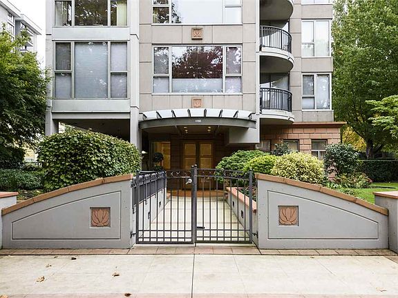 Soaring 11' ceilings in this bright, open 2 bedroom home. The gas fireplace does most of the heating and the huge 577sq.ft. patio space is great for outdoor living. With only 1 suite per floor, this building is private and well cared for. Location is spectacular. Tree lined streets are a quick walk to South Granville shopping, restaurants and transit. Pets and rentals are allowed (Dog max height at shoulder 20"). 2 parking stalls & storage area included. Showings by appointment.
