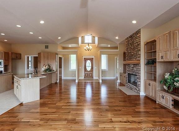 Beautiful updated Woodmoor home! Brick/stucco exterior with a tile roof, 3 car garage, walk-out, 5 beds, 3 baths, and gorgeous views of Pikes Peak and the Front Range just begin to describe this Woodmoor beauty. Interior features include 10' ceilings on the main level, Marvin casement windows, radiant floor heat, new slab granite counters, new acacia hardwood flooring, new stainless appliances, brand new carpet, tile, and paint throughout, 2 humidifiers, huge Family Room with wet bar, large fenced backyard and VIEWS!