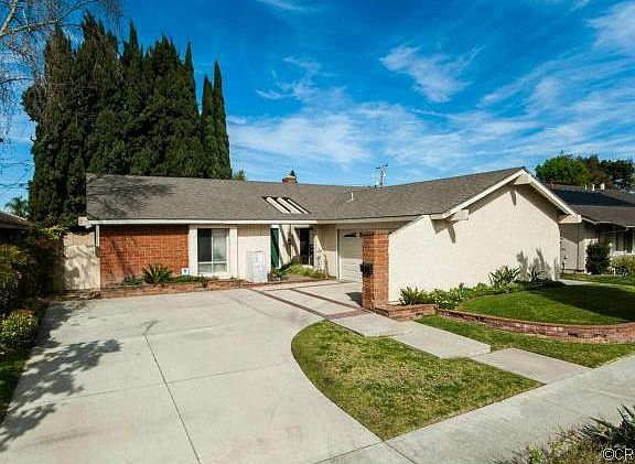Conveniently located single level home in Tustin is within walking distance to Columbus Tustin Middle School and Community Park and within close proximity to neighborhood shopping areas and local freeways. Light and airy with vaulted ceilings, this home has been recently remodeled with a gourmet kitchen and open floor plan. The granite kitchen has a huge island with room to spread out when cooking and entertaining. Richly stained cabinets are accented by the beautiful granite and stainless steel appliances, including the refrigerator! Travertine flooring enlarge the living and dining areas and are set off by a custom designed stacked stone dual sided fireplace. With an ample size yard of 7280 square feet, you have plenty of room for entertaining and even have room for a pool! This home is within the boundaries of awarding winning schools, neighborhood parks and walking trails..it has the best of it all!