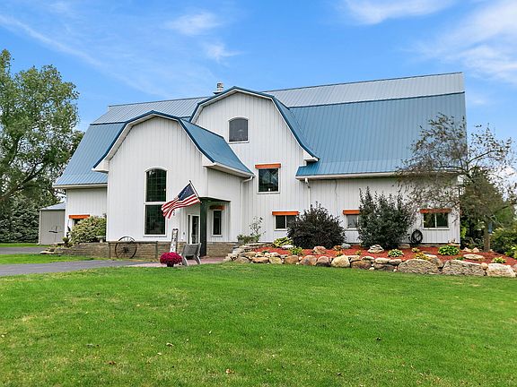 ***MULTIPLE OFFERS RECEIVED - HIGHEST & BEST OFFERS DUE BY 5PM SATURDAY, NOVEMBER 16TH.***Stunning Custom-Built Barn Home on 2+ Acres in Monroe Center - This extraordinary custom-built barn home, nestled on over two acres with two large outbuildings, is a true masterpiece of craftsmanship. Featuring over 5,300 sq ft of living space, the 3-bedroom, 3.5-bath home offers wide plank pine wood flooring, custom woodwork, and 200-year-old refurbished beams that add timeless charm and character. The expansive living room is a showstopper with its soaring ceilings, floor-to-ceiling windows that flood the space with natural light, and an impressive stone fireplace. The main floor is home to a spacious master suite, complete with an updated bathroom, walk-in closet, and a private deck overlooking the picturesque property. The convenience of main-floor laundry adds to the home's functionality. A grand wooden staircase leads to the upper level, which features a large bonus room, a cozy sitting area, two additional bedrooms, and a full bath. The fully finished lower level is perfect for entertaining, boasting a custom-built bar, second kitchen, large family room, and access to a deck leading to a brick paver fire pit. Outside, you'll find a private deck that wraps around three sides of the home, ideal for hosting gatherings or enjoying peaceful evenings. Energy-efficient zoned radiant heating throughout ensures comfort in every season. With two large outbuildings and a 3-car garage, there is ample space for a workshop, storage, or recreational vehicles. Shop is 48 x 32 with cement floor, electricity and heat. Pole barn is approximately 70 x 35 Located just minutes from I-39 and within the highly rated Stillman Valley School district, this home offers the perfect blend of rural living and modern amenities. Don't miss your opportunity to own this unique and expansive property!