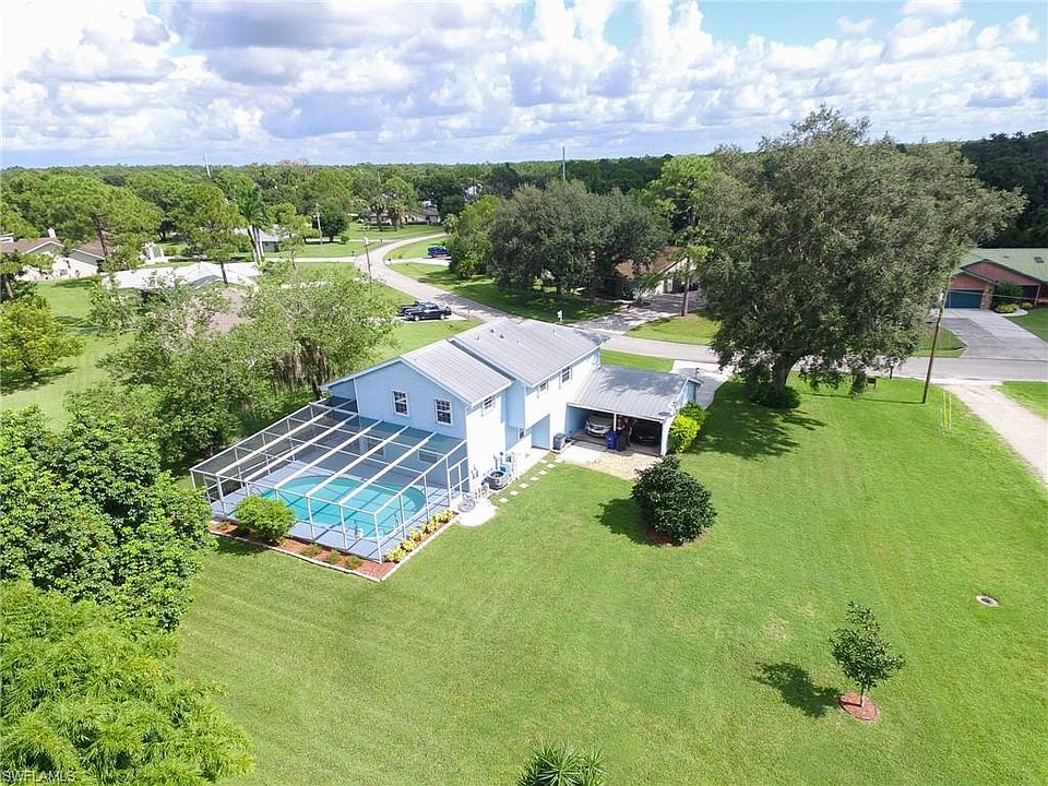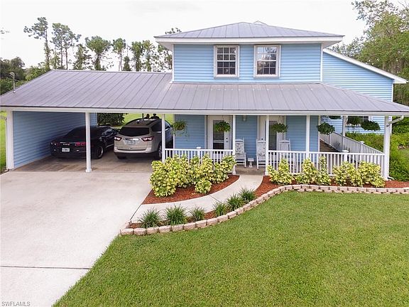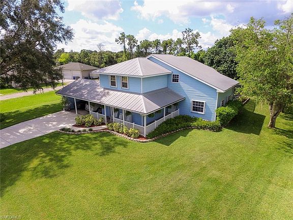 Beautiful country style two-story pool home that sits on almost three-quarters of an acre and is located in one of the most coveted neighborhoods in North Fort Myers! Colonial Pines is a subdivision that does not have an HOA. The home has a metal roof and accordion shutters. You are located 5 minutes from I-75 and 10 minutes from Publix. All of the bedrooms are upstairs. There is a large den downstairs. The well-appointed kitchen features granite counter-tops and stainless steel appliances. Located on a quiet cul-de-sac street. There is a wrap-around porch that is connected to the attached carport that fits two vehicles comfortably. Includes additional storage shed at the back of the property. The driveway is over-sized for parking multiple vehicles. Room for your toys, extra vehicles, RV's, & boat. If you are looking for a wonderful place to call home, this is it! Schedule your private showing today. New AC in 2016, New water heater 2018, new pressure tanks, gauges & switches in 2018, New pool pump & motor in 2019. Includes: Rocking chairs, pool furniture, riding lawn mower, upright freezer. Sellers Disclosure with updates attached.