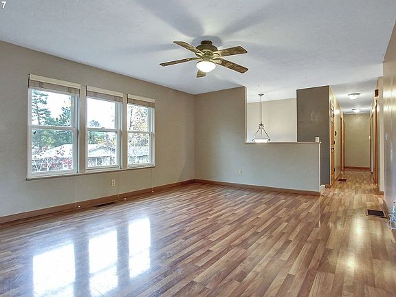 Wonderful home on large corner lot! Open kitchen/dining areas, high ceilings, tons of natural light, granite, laminate floors, ceiling fans, A/C, 11 solar panels, oversized 2 car garage and so much more. With a grand curved, cement stair exterior entrance this house stands out! Vast patios, deck, pond, shed, and raised beds provide many opportunities for those who enjoy the outdoors.