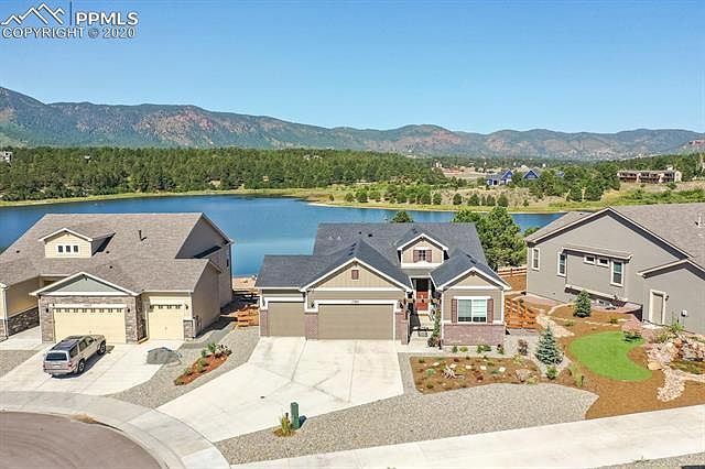 RARE opportunity for LAKE FRONT living in Monument! This home was built in 2019 and is better than New! This lot backs to Monument Lake and has incredible views of Mount Herman. Walk right out your back gate to fish, paddle board, kayak, or hike! This was a premiere lot from the builder, and sits in a quiet cul-de-sac in the desirable Lake of the Rockies Community. This STUNNING open concept rancher includes 3 bedrooms (with a recently completed 4th bedroom with barn door closet). The main level has views of the lake and mountains from every window. The main level hosts a large formal dining room, open kitchen (with gas and granite countertops), walk in pantry, butlers pantry, and dining nook that overlooks the lake. The master suite is luxurious with the adjoining 5-piece master bath, walk in closet, and linen closet. There is an additional upper level bedroom. The basement is finished and walks out to a concrete patio with natural gas grill and custom grilling station. The basement hosts 2 additional bedrooms and a 3/4 bath. There is plenty of storage and one side of the storage room is currently being utilized as an exercise room! The backyard OASIS has been recently completed with stone steps leading to a gas fire pit with boulder seating. The 3rd car garage has a 50 amp charging station for electric cars or RVs. Walk to Historic Downtown Monument concerts, Farmers Markets, restaurants, and shops. Located close to I-25 for an easy Denver commute, and just a few minutes from the AFA or Springs. You will love the 365 day vacation experience from living right on the water.