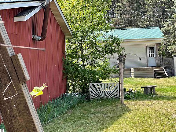 Savor main-level living, including a large entry mudroom, full basement, and complete with outbuildings & fenced backyard. This spacious home has a single-level floor plan and a warm and welcoming interior. It offers expansive living areas, including a 32x24 pole barn, garden shed, and chicken coup. Enjoy privacy with this fenced-in backyard, shade trees aligning the property's perimeter, well-maintained gardens, and fruit trees; countryside living at its best. A super-convenient location 15 minutes from Traverse City and 10 minutes from Crystal Mountain. Close to RV/Snowmobile Trails, State Land, and Betsie River.
