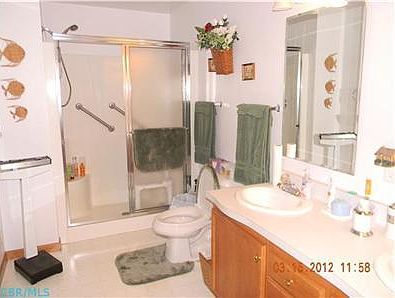 Spacious well maintained Unibuilt on poured full bsmt. 5.83 acres. 40x60 barn with additionl space for RV. Elec. water and sewage drop also wired for heat. Vinyl clad windows w/custom blinds. Atrium doors lead to covered patio, overlooking a well landscaped lawn. Some hardwood floors, Gourmet' appl. kitchen. Owners relocating South.