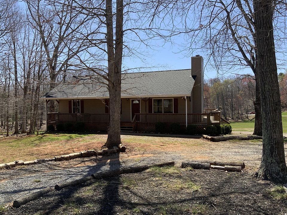 Charming one story home with basement and front porch and wrap around deck. Wood burning stone fireplace and cathedral ceiling. New HVAC 2020. New roof 2019. New doors and windows in kitchen. Kitchen appliances convey. New windows in master bedroom and master bath. Clothes washer and dryer convey. Garage door opens manually. Convenient location near Smith Mountain Lake. Over an acre level lot.