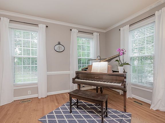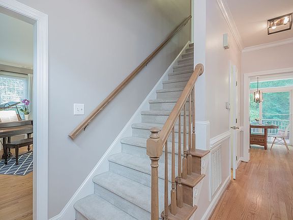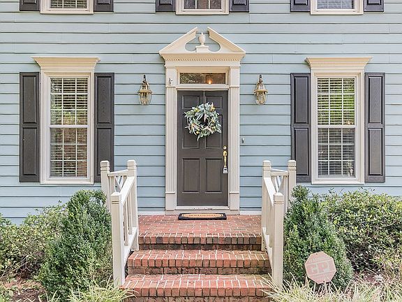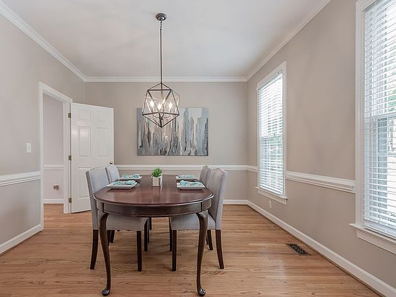 Beautiful cul-de-sac home backs to woods that can't be developed. One of the best & most private lots in Downing Creek! Home has Dakor cooktop and SS oven (2017), upstairs HVAC (2017), beautiful built-in cabinets, updated light fixtures, 1st-fl hardwoods, walk-in closets in every bedroom, large bonus room, and huge unfinished walk-up 3rd floor space. Convenient upstairs laundry. Roof replaced 2012, 7.5 kW solar added 2021. Great neighborhood park, optional pool & tennis, EZ access to UNC, 40, RDU.
