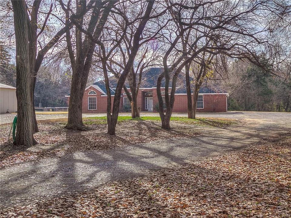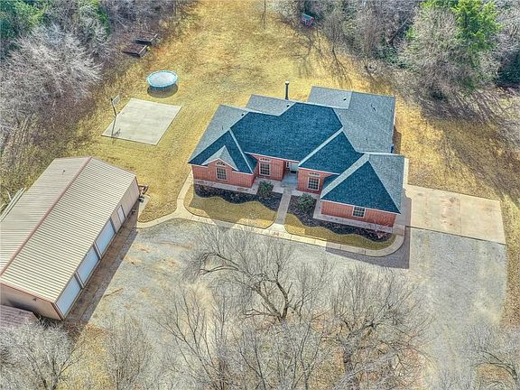 **Seller offering $5k in buyer's closing costs and/or granite paid** This is your unicorn, 10 Acres mol in Kingfisher! Beautiful creek-side property with trees galore right on the edge of town with city water! Gorgeous drive up to the house. Wonderful shop with 3 Overhead doors(2 automatic). Shop comes equipped with private office space and full bathroom. 20x20 pad that is currently being used as a basketball court. Wide open clearing which owners use for shooting range. Home has had fresh interior and exterior painting, new roof, new heat & air, 2 new hot water tanks, water softener, new hall bath tub, as well as all new hardware & door hinges throughout. Storm cellar in garage, septic system recently serviced, wonderful back patio with peaceful view of the land. Master bedroom has private patio entrance. The other 3 bedrooms are very large boasting king size beds and huge closets. Very large mudroom with side entry access and separate from laundry room!