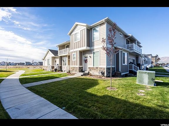 Don't miss out on this beautiful townhome in the heart of Eagle Mountain! It is located in a very convenient location for commuters and is close to a gas station, schools, hiking trails, parks, and more. The home features a beautiful view, stainless steal appliances, granite counter tops, upgraded flooring, a balcony off of the master bedroom, and lots of room for storage. The basement is yet to be finished and is plumbed to have an additional bathroom installed. The community features two playgrounds, a clubhouse, and lots of room to explore. Best of all, this home has been VERY well taken care of, and is basically a brand new home! This home is priced to sell, and it will move fast! Square footage figures are provided as a courtesy estimate only. Buyer is advised to obtain an independent measurement.