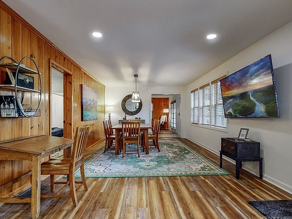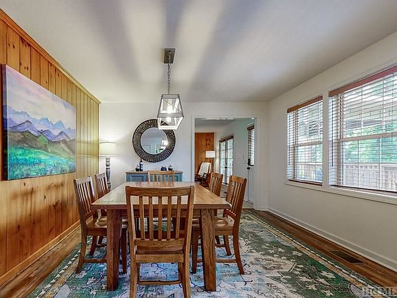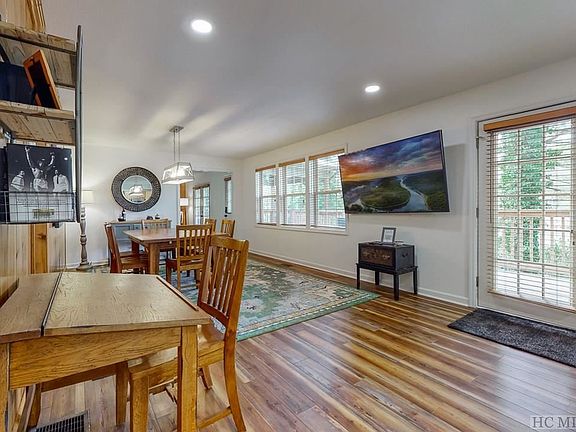 This renovated two-bedroom, two-bath lake view cottage is the perfect Highlands hideaway! The well-appointed kitchen and large dining room make entertaining a breeze. Relax by the fire in the cozy, comfy living room that has a warm, wood-paneled accent wall. Double doors lead to the spacious, partially covered deck, where you can enjoy the gorgeous views of Lake Sequoyah. Each bedroom has its own en suite bath for privacy. The home offers one level living and there is a ramp in the back for accessibility. There is easy access to Lake Sequoyah via a walking path. Once there, you can "unwind" on the private beach as you soak in the beautiful lake scenery, or launch one of the two kayaks that are included in the sale of the home. Conveniently located just a few minutes from downtown Highlands with its world-class restaurants and boutiques, "Hicks Hideaway" is perfectly situated for enjoying all the wonderful activities that Highlands has to offer.