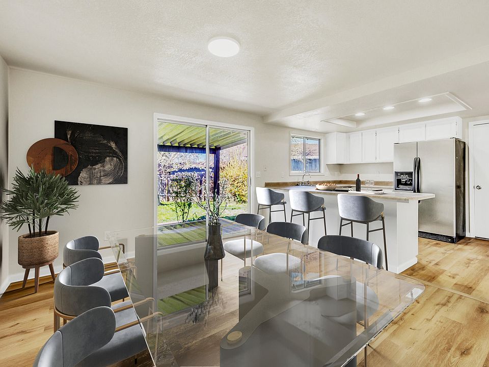 Move In Ready with new updates done! Great location 2 blocks from Lone Pine School, Park with water sprays, and close to Trail System. New interior and exterior paint. New water-resistant Luxury Plank flooring throughout, No carpet! New interior lights, handles, baseboards, and trim. White cabinets throughout and open kitchen with newer SS appliances incl Smart range can be controlled with a Smartphone. Refrigerator with ice/water on the door, eating bar in kitchen, newer roof, Gas forced air HVAC and gas hot water heater. Slider off dining room and Primary Suite to large, covered patio and covered deck. Timed sprinklers front and rear with fenced backyard. Brick gas log fireplace in Great Room. Deep oversized 2 car Garage w/ door to backyard. Room to add Bonus room or shop.