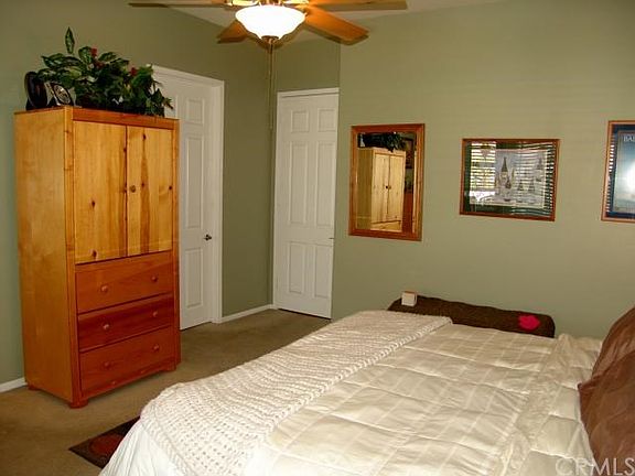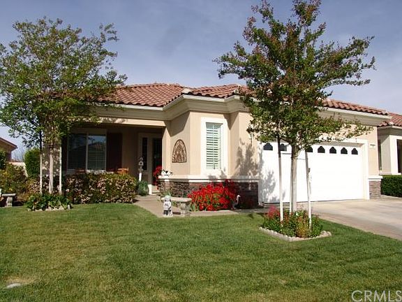 Solera is all about choices! You can take advantage of all the activities available and pre-arranged, or you can enjoy the security of the gated community and simply relax... in peace and tranquility. This Trillion model offers the option of 2 bedrooms plus den or 3 bedrooms (so easy to add a closet). Plantation shutters and custom window treatments let in light or keep it out. Designer paint, ceiling fans, full-length back patio cover, french door to rear yard, 220 and slab ready for the new spa you bring in.... 2-car garage w/ storage overhead and auto garage-door opener. Peek-a-boo views. Aluma-wood fencing, new toilets, ceiling fans and more add to your enjoyment of your home in your active retirement years. For your private viewing, call Terrie or Jewel at 909-225-2329 or 909-528-8105.
