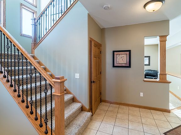 This gorgeous custom built 2 story in Upper North Mankato, with over 3,000 finished square feet is a showstopper starting with the welcoming front porch! The spacious foyer boasts durable tile floor, convenient coat closet, open flow access to kitchen and main floor living room. There is continuous tile floor leads you to the dining and kitchen area. The kitchen has new Cambria countertops, tile backslash, modern lighting, stainless steel appliances, Hickory cabinets, awesome pantry storage and island with seating. Off the dining there are patio doors leading to the 10 x 14 deck with steps to the back yard. The main floor living room is flooded with natural light from the large windows, and offers neutral décor with gas fireplace. Main floor also offers an office space with 6 panel French doors, half bath off the back entry storage space/mudroom. Upstairs you will find 4 same floor bedrooms including Master Suite. Master bathroom includes walk-in tile shower, water closet, double vanity and jetted tub! Upper level full bathroom and special bonus – upper level laundry with utility sink – so convenient! The recently finished downstairs you will find even more living space including an enormous family room with adjacent dry bar with gaming area, large daylight windows eliminating that ‘basement feel’, and 5th bedroom. Basement also offers storage, mechanical room and is plumbed for a 4th bathroom. Basement foundation is surrounded by a 2x8 FormaDrain System and the finished basement floor area has DryCore subfloor. This home is all about the details including several 6-panel doors, custom shelving systems in the bedroom closets, and thoughtfully designed spaces.