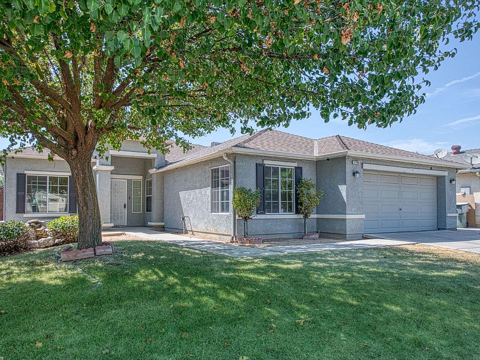 Welcome to this single story home nestled in a quiet NW Fresno community within the popular Central Unified School District. With over 1,800 sq. ft. of living space, 4 bedrooms, and 2 bathrooms on a 6000 sq. ft. lot, the home is designed for modern living. The open-concept layout features beautiful neutral tile flooring in the common areas and a spacious living room with a cozy gas fireplace. The kitchen boasts granite countertops, a gas stove, abundant storage, a dining nook, and a breakfast bar, making it a central hub for meals and gatherings. Outdoors, enjoy a covered patio with extended concrete, surrounded by mature landscaping perfect for entertaining or relaxing in the California sunshine. A 2-car garage adds convenience and storage space. Close to shopping, schools, freeways, and parks, this home blends peaceful neighborhood living with everyday accessibility. Truly a house to call Home Sweet Home!
