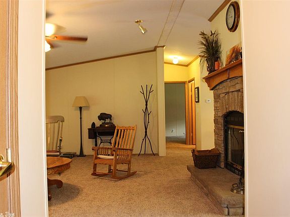 The most immaculate mobile home on the market! Features 3 bd, 2 ba, master is oversized. Open floor plan for kitchen/dining & living room has wood burning fireplace & is open to kitchen. Separate laundry room & pantry. Refrigerator as well as the washer and dryer will remain. New updates include: new carpet throughout, new hot water heater, new paint, plus the addition on a new storage building. Other features include wood deck all along the back, 5.89 acres & gated. Look today - won't last long!