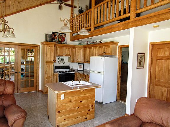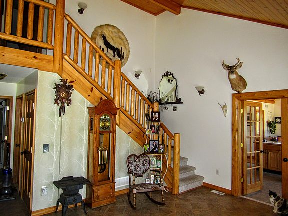 Beautiful Custom Built Home on 40 Acres. This home is quality crafted from the pine staircase to the marble window sills. Hardwood Flooring and Ceramic Tile though out. French doors divide two living areas, both with separate kitchens and living areas (originally designed as a mother-in-law suite). Vaulted knotty pine ceilings and windows overlooking property, gives this home a bright, open and airy feeling. King Creek runs through the property, connecting with a bridge and lots of wooded trails. 1 large garage and 1 30 x 35 foot pole barn, with electric fencing, water, and heat.