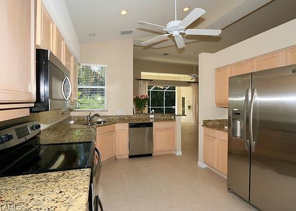 Villa is having some repair work completed on the kitchen. Please call agent for more details. The only Villa on the market in Stonebridge and offers the highly desired private South facing pool. This 3 Bedroom /2 Bath Brentwood model has over 1900 sq. feet with volume ceilings, all new neutral carpet in the bedrooms, tile floors, freshly painted interior, Granite counters and Stainless appliances in the eat-in kitchen. The Master is quite large, has a door leading to the lanai, spacious walk-in closet and Master bath with dual sinks and both a tub and shower. Stonebridge is an amenity rich Gated Bundled Golf Country Club Community where every owner is a member of the club. Enjoy the challenging 18 hole golf course, the 5 hard-tru lit tennis courts, fitness center, Gorgeous newly enlarged and renovated Clubhouse where both fine and casual dining is available. Stonebridge Country Club has a fantastic North Naples location, only 3 miles to the Beach and 3 miles to I-75. Mercato shops and restaurants are only 5 minutes away and Olde Naples is a 15 minute drive.