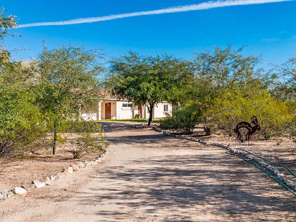 Live away from it all on this huge gated rural property in Sahuarita! The house sits on 4.75 acres, including a very large, completely enclosed backyard. The entire 4.75 acres is fenced with gates in three locations: the main driveway, the northeast corner and the northwest corner. On the grounds are two walking trails, perfect for peaceful evening strolls. Inside, the house is laid out in a split floorplan with ceramic tile throughout the living areas. The kitchen features alder cabinets with Corian counters and a gas range. The 2-car garage has an evap cooler. Also on property is a chicken coop that will convey. This home is a wonderful escape from the world!