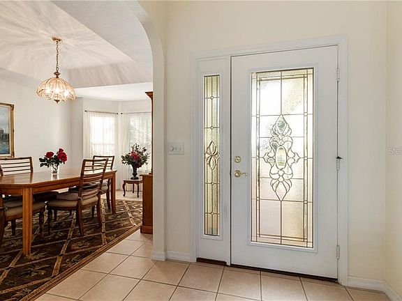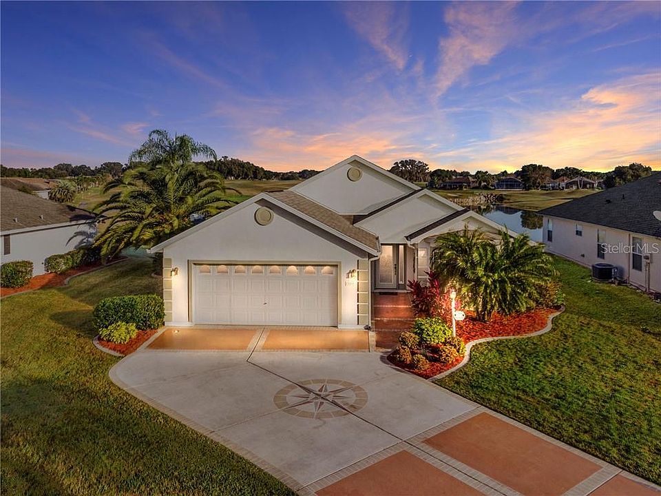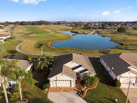 Located in the Exclusive, Gated, 55+ Golf Community of STONECREST adjacent to THE VILLAGES, FL! You're going to love this home! Professionally landscaped with palms and curbing, decorative painted drive and lanai and OH WHAT A PANORAMIC VIEW of Golf course and Water! Gorgeous WATER and 2nd GREEN view from the front entrance of this 3 bedroom / 2 bath HICKORY Floor plan with Lanai and Birdcage! Pre-wired for hot tub. Tray ceiling and Bay window in Dining Room and Master! Pull out shelves in Kitchen and Island! Tinted windows throughout! Four tinted sliding glass doors across back leading out to Lanai! HVAC 2019, Water heater 2018, Garage door opener 2018, Exterior painted 2017! Lanai can be accessed from Master! Whole house security system and power surge protection! Don't let this one slip away..Schedule your showing today! FURNITURE PACKAGE AVAILABLE SEPARATELY!