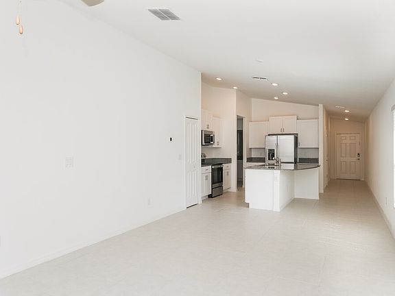 You'll love this three-bedroom, two-bathroom rental home in Lutz, Florida. This one-story house has an open floor plan that features a living room with light walls, sliding glass doors for plenty of natural light, and a convenient ceiling fan. The kitchen has white cabinets, a large island with a bar that's great for entertaining, and modern appliances. The main bedroom features cozy carpeting, great natural light, and an en-suite bathroom. Outside, there's plenty of yard space for gathering as well as an attached garage. Tour this lovely rental home today!