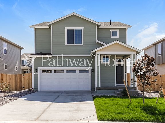 This home features a spacious two-story layout with four bedrooms, two full bathrooms, and a convenient powder bath. The expansive master suite offers a serene retreat with a sitting area, large walk-in closet, and an en suite bathroom complete with a soaking tub, glass-enclosed shower, and double-sink vanity. The open-concept design includes a large kitchen island with a breakfast bar and quartz countertops. Enjoy outdoor living with a charming front porch and spacious back patio. Located in a prime community, residents have access to a park, and are close to Denver International Airport, downtown Denver, and Barr Lake State Park.