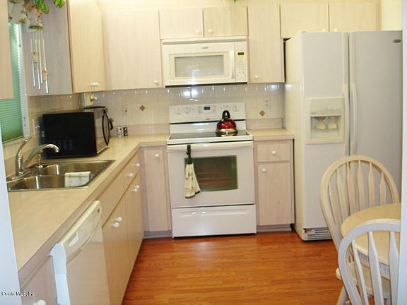Popular Chestnut II model features 2 large bedrooms (both with large walk-in closets), 2 Full Baths, Nice eat-in kitchen with tiled backsplash, 20x22 two car Garage with lots of storage and Privacy Screen. This lovely home has great curb appeal, volume ceilings, Carpeted Acrylic Enclosed Lanai under trussed roof, 10x10 outdoor patio, double paned windows, inside laundry with storage, laminate flooring throughout the home with Tile in the bathrooms. Roof replaced in 2004. Newer Hot Water Heater. Near Clubhouse and pool. This home is Clean and in move-in condition!